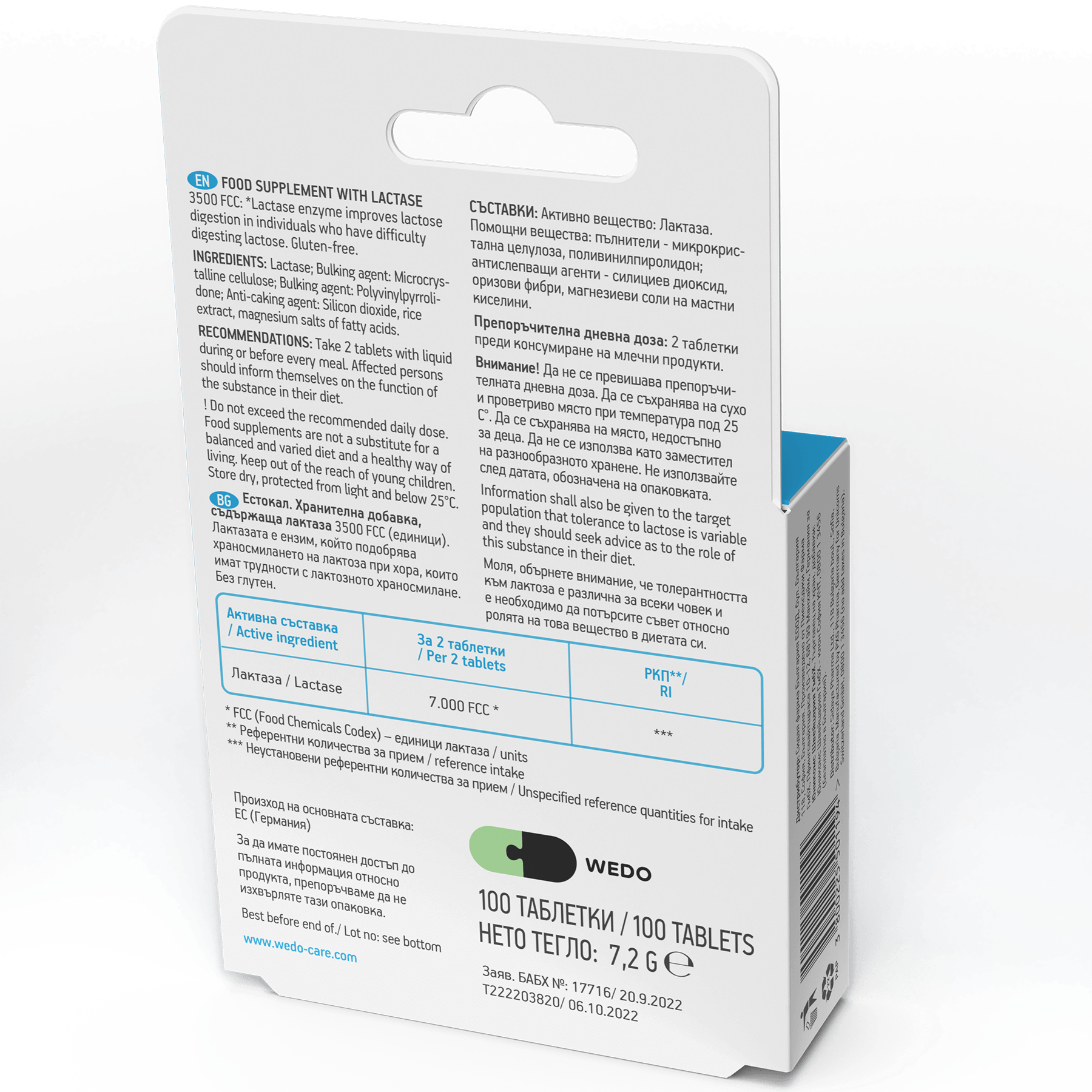2 таблети пред консумирање млечни производи