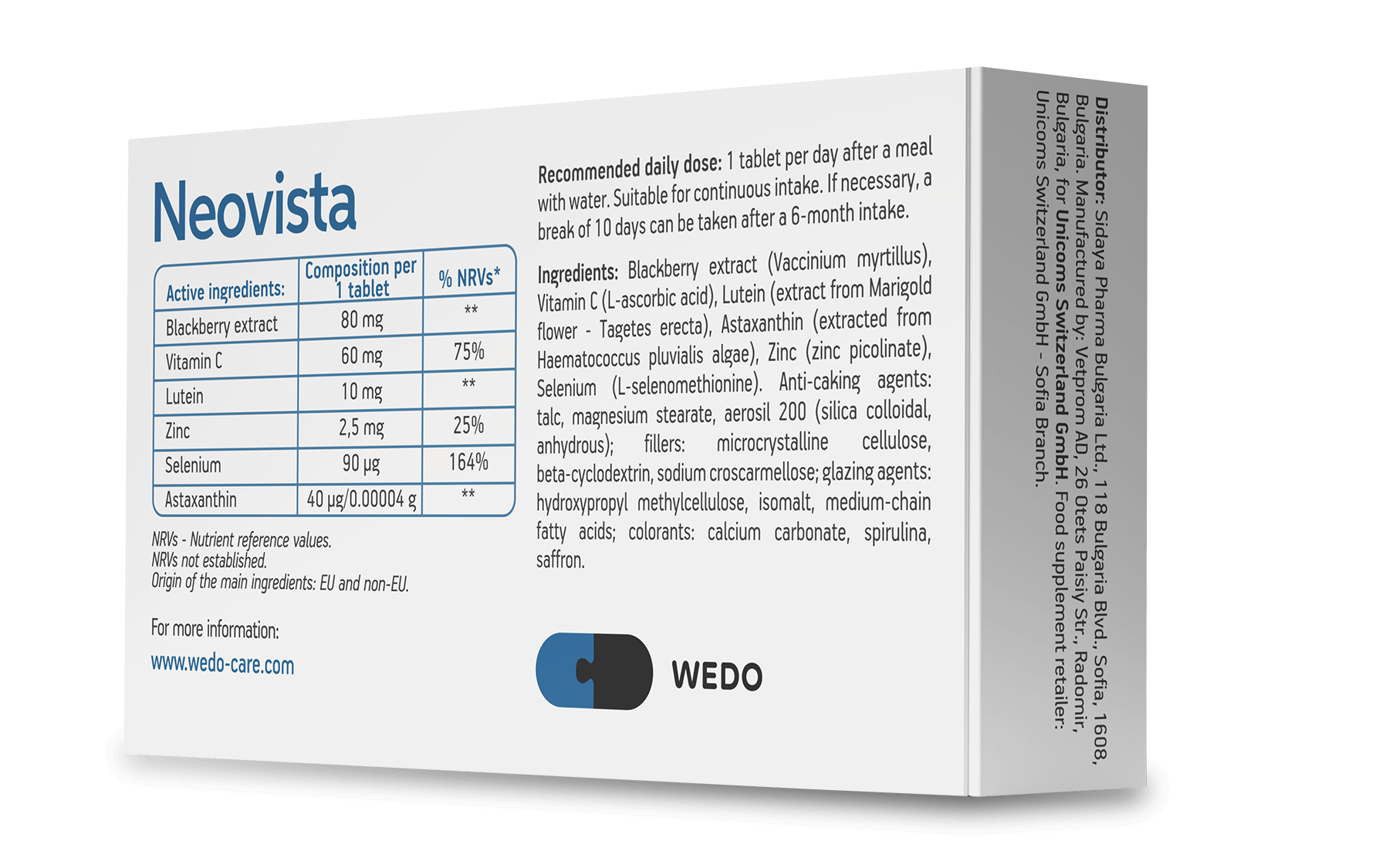 Formula e Neovista përmban përbërës me efikasitet të provuar që kujdesen për shikimin tuaj optimal ditën dhe natën, rrisin mprehtësinë vizuale dhe adresojnë nevojat specifike të sistemit vizual.