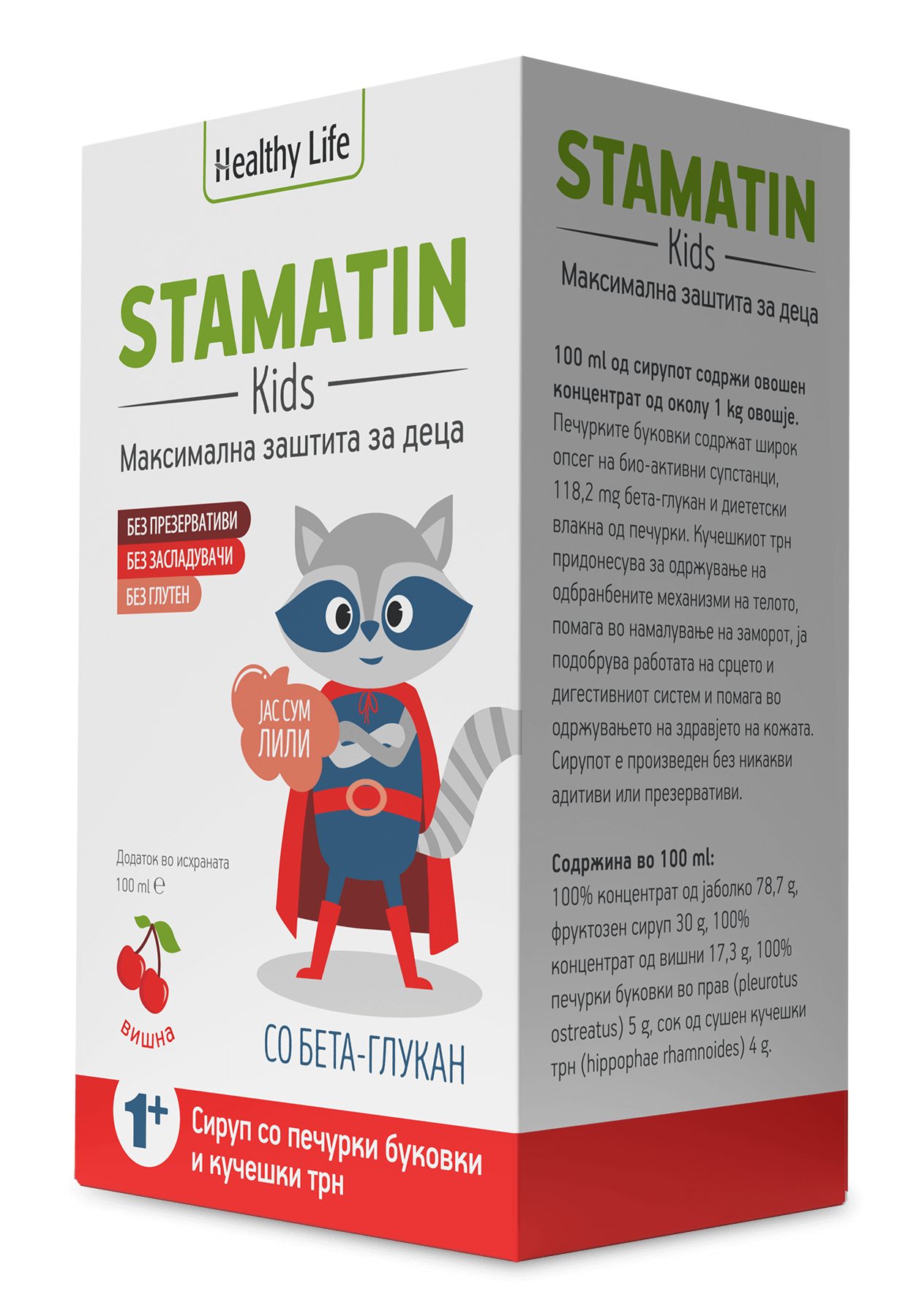Stamatin Kids го зајакнува имунитетот и го подобрува одбранбениот механизам кај деца над 1 година. Содржи само природни состојки без засладувачи, конзерванси, бои и глутен. Stamatin Kids е во форма на вкусен овошен сируп пријатен за детето.