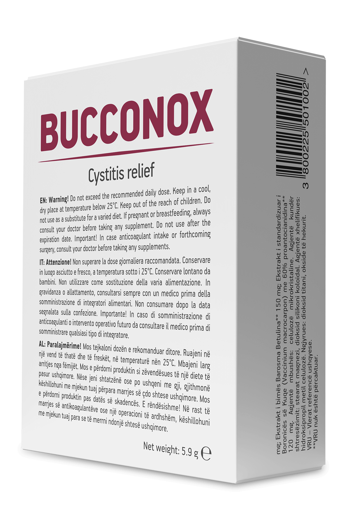 Bucconox ka një veprim kompleks në cistit dhe inflamacione të tjera të traktit urinar, rrit prodhimin e urinës dhe lehtëson pastrimin e traktit urinar.